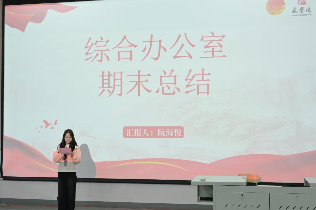 本次会议既是对本学期工作的系统总结,也为下学期的工作指明了方向。文学院分团委将以此为新起点,保持踔厉奋发的昂扬干劲,扎实履职尽责,继续以饱满的热情、务实的作风投入工作,不断书写文学院分团委发展的崭新篇章。(陈淑文/摄)