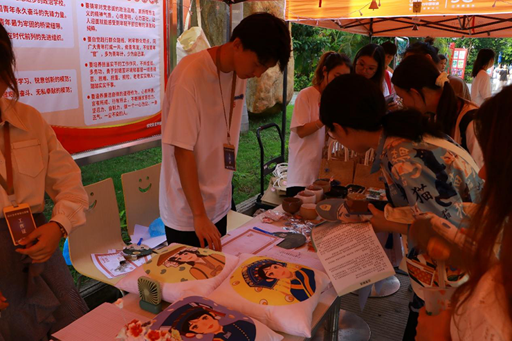 由人文教育学院分团和设计艺术学院分团共同举办的“艺”想“添”开主题活动于2022年5月27日圆满结束。此次活动为期两天,以“科技创新创业+以物换物+爱心捐赠”形式开展活动划分为游戏专区、手工互动专区、爱心义卖专区和毕业捐赠专区等四个区域。为方便同学们了解活动分区特别设置了咨询台。此次活动征集物资共计1138余件,活动所征集物资及收益以学校名义赠予北海市内我校对点帮扶学校以及广西壮族自治区河池市共青团大化瑶族自治县委员会
