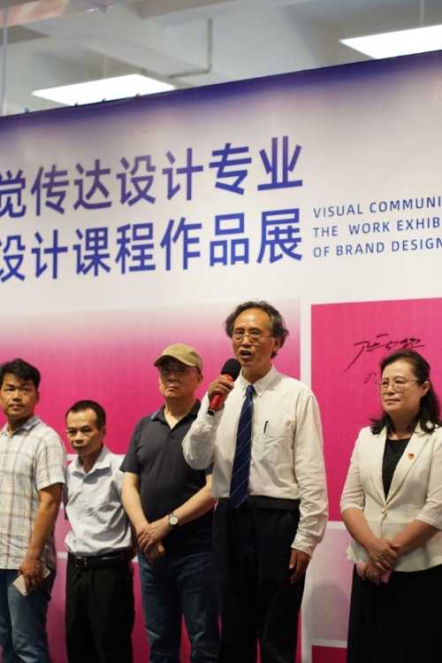 草长莺飞,鸟语花香,2023年5月6日上午,设计艺术学院2020级视觉传达设计专业品牌设计课程作品展在艺德楼8楼开展。出席本次展览开幕式的领导和嘉宾有学校党委书记张阳、校长卢新华,学院书记黄锦、院长李林平、副院长白建强、副院长李佩以及傅颖哲、范娅兰、侯林、龚东庆、王善民等教授,此外,北远见传媒集团、北海市广告协会会长刘利平,北海银滩景区公司总经理助理闫俊天,北海市任逍遥旅游文化有限公司执行董事张广,京海传媒副总经理刘龙文应邀出席。