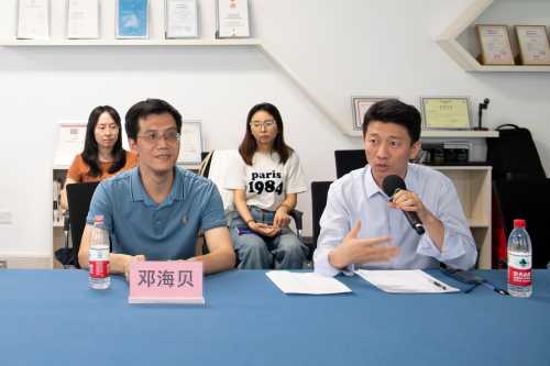 首先,李林平院长介绍了邓海贝副教授的基本情况,邓海贝副教授在中国国际“互联网+”大学生创新创业大赛和全国大学生广告艺术大赛中取得优异成绩,他不仅指导学生获得了众多国家级和区级奖项,还多次被评为国家级和广西赛区优秀指导教师。此次受邀来我院,将带来丰富的参赛经验和深刻的行业见解,供我们广大青年教师借鉴和参考。