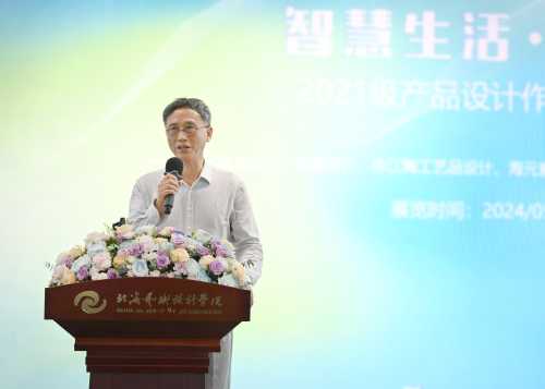 专业教师代表于易辰在发言中,首先对同学们的热爱与执着、创意与才华以及智慧与心血表示肯定,她认为本次产品设计作业展是对同学们专业学习成果的阶段性的展示,也是对同学们设计能力的深入检验。这场展览不仅是一场视觉的盛宴,更是一次心灵的洗礼。最后为即将前往北京学习的2021级产品设计专业学子送上最真挚的祝福。