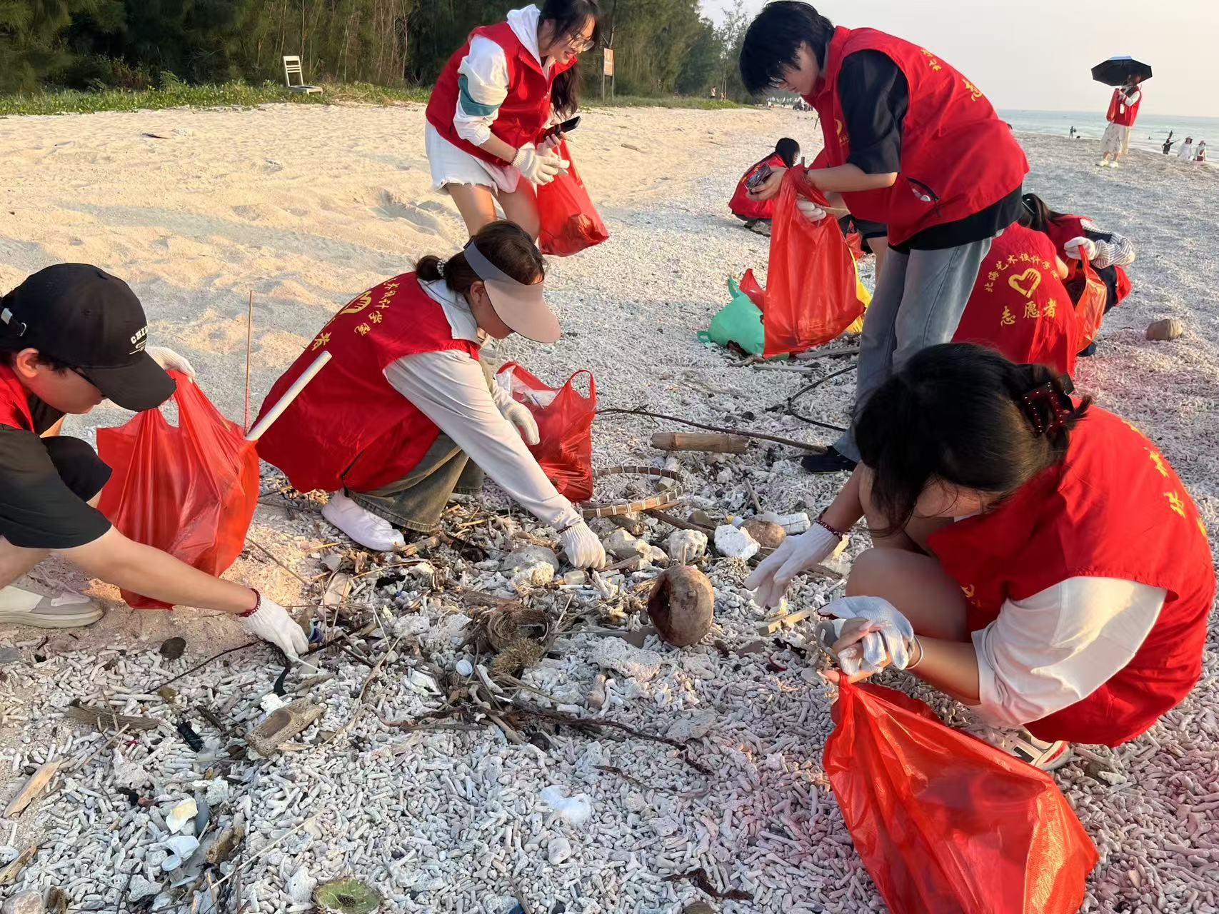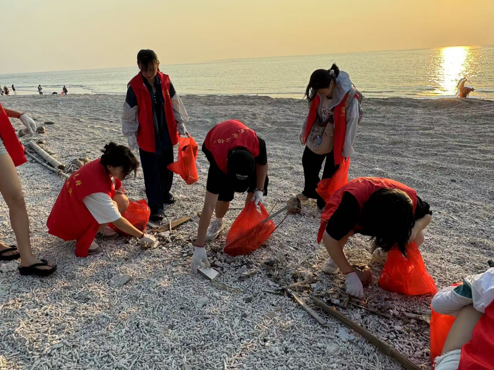 此外,分团委还组织了“守护蓝色海岸线,共筑美好涠洲岛”海滩清洁社会实践活动。各班班主任带领学生们积极投身志愿服务,用实际行动践行环保理念,展现了设计艺术学院学生强烈的社会责任感与积极向上的精神风貌。