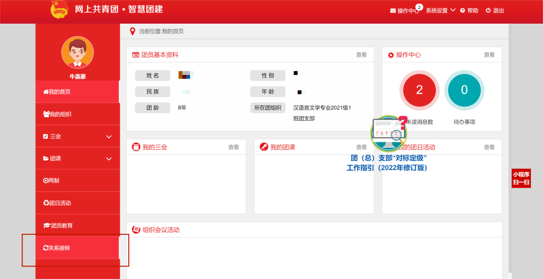 最后,纸质团籍档案交予学院分团委。学院分团委审核确认档案完整、无误后,同学们就可以将自己“智慧团建”管理系统的团籍信息转入我校学院班级团支部啦!