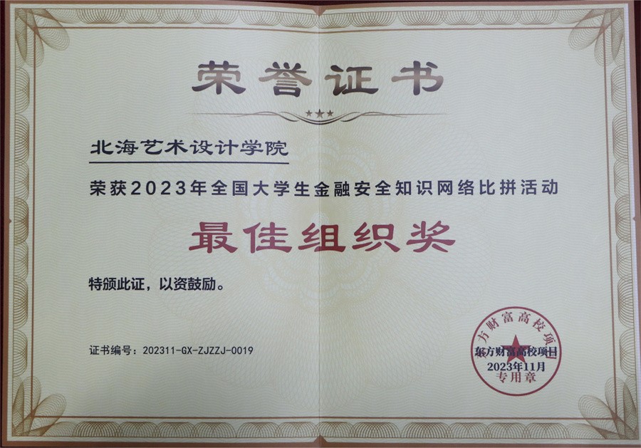 近日,我校团委在2023年“东方财富杯”全国大学生金融安全知识网络比拼活动中荣获“最佳组织奖”。