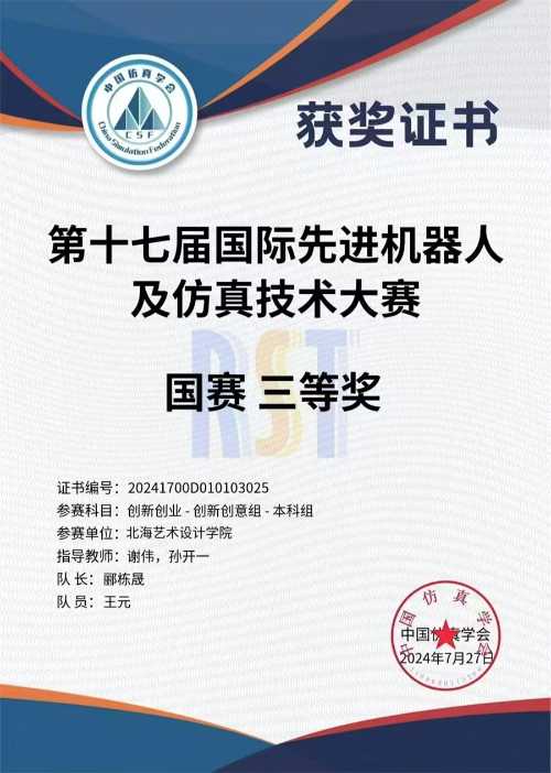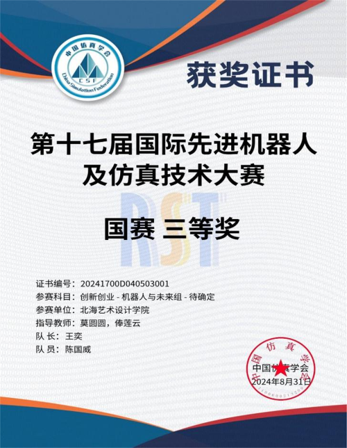 2024年8月,由中国仿真学会及中国软件科学院研究所联合主办,中国仿真学会机器人系统仿真专委会和北京博雅融合教育与科技中心承办的2024年第十七届国际先进机器人及仿真技术大赛在江苏南通圆满落幕。经过激烈角逐,我校哲学学院荣获该大赛国赛三等奖2项,广西赛区一等奖1项、二等奖1项、三等奖3项。