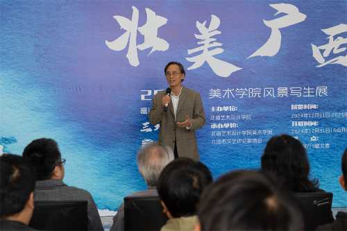 陶立阳副校长在讲话中表示,一直以来,美术学院积极贯彻党的二十届三中全会精神和党的教育方针,立足民族文化遗产,致力于推动广西文化的繁荣。广西这片富有魅力的土地,为美术学院师生提供了无尽的创作灵感,广大师生用画笔充分展现了广西各地独特的美。他强调,美术学院在教学中要始终坚持以人民为中心的创作导向,立足本土,提升创新能力,同时推动科学与艺术的深度融合,努力取得更加显著的成果。