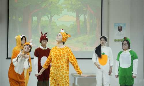 学前儿童文学与创作是学前教育专业的必修课程。课程巧妙融合理论与实践,是创新创业教育与专业深度交融的示范课程。此次儿童文学与创作汇报展演将理论知识与实践相结合,充分体现了学前教育专业人才培养方案中的海洋文化特色。在专业教师的悉心指导下,学前教育专业2301班全体学生综合运用美术、音乐、舞蹈、儿童剧目编排等能力,从展演策划、节目编排、现场布置等方面积极参与,共同完成汇报展演,其中儿童剧均由学生根据原有剧本改编完成。
