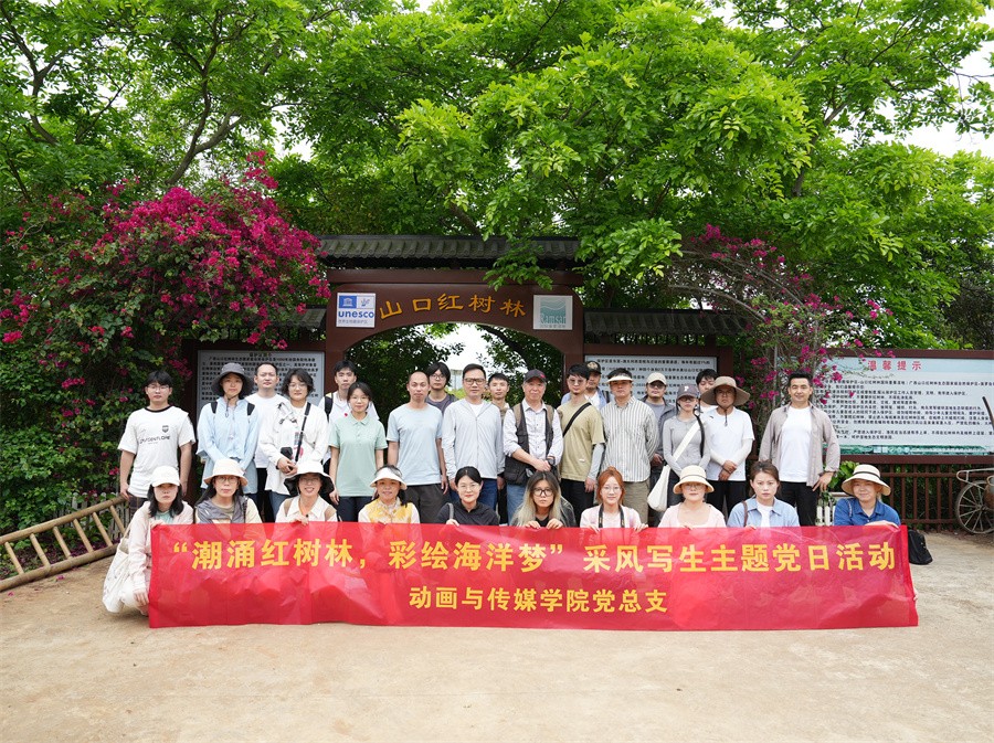 动画与传媒学院将以此次主题党日活动为契机,持续深化“党建红”引领“生态绿”的实践路径,以专业特质激活生态保护新叙事,进行艺术创作与社会服务深度耦合的探索,锤炼影视采风、场景原画等核心技能,培育青年学子“用艺术守护蔚蓝”的使命自觉,在红树林的潮起潮落间,书写属于动传人的生态答卷。