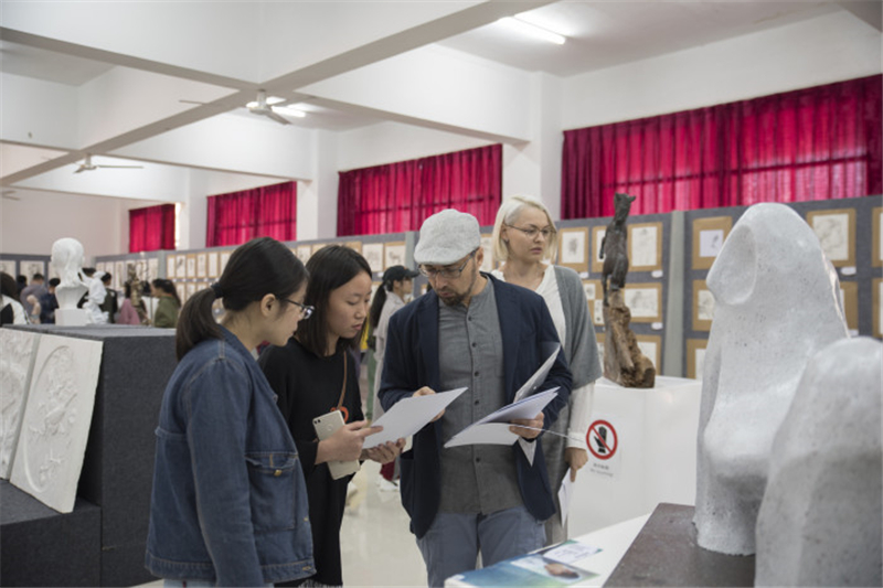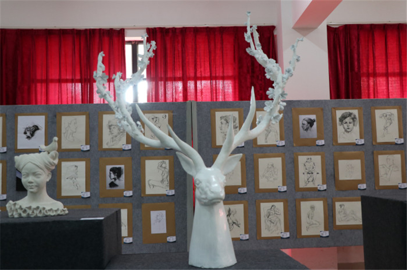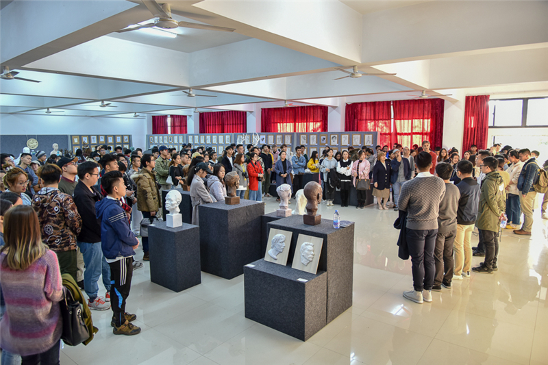 此次展览展出的是雕塑系师生作品,展出作品除雕塑作品外,还有一些绘画作品。参加展览的师生细细品酌每件作品的精妙之处,感受这一场视觉艺术的饕餮盛宴。