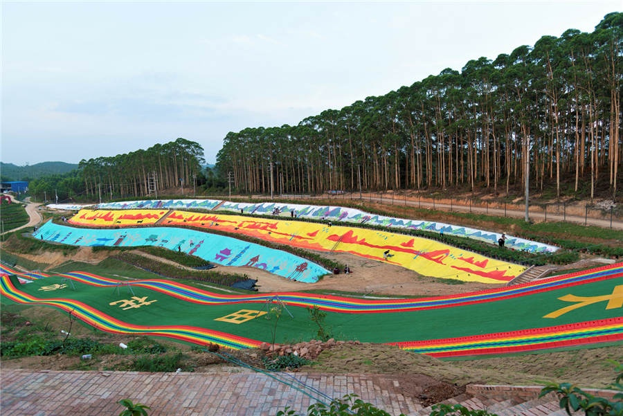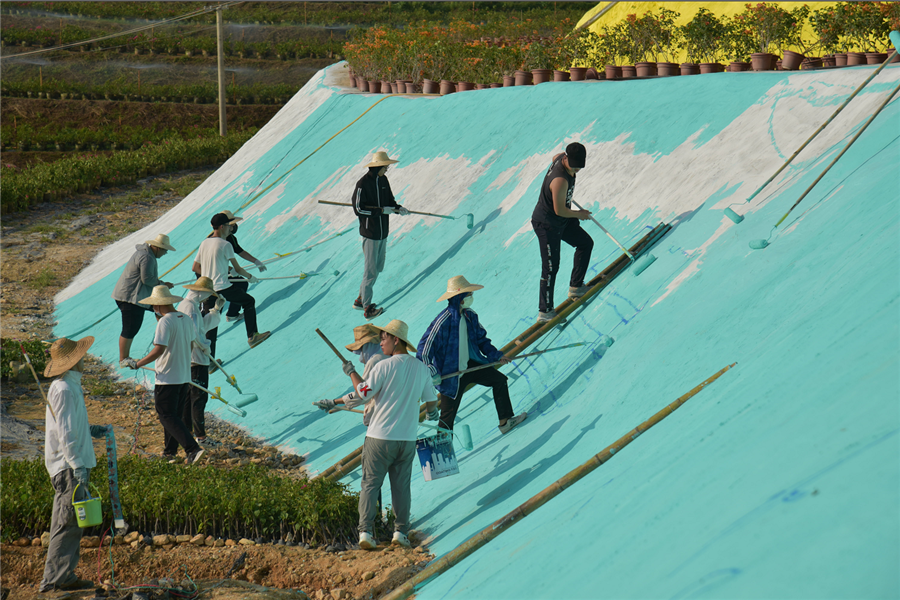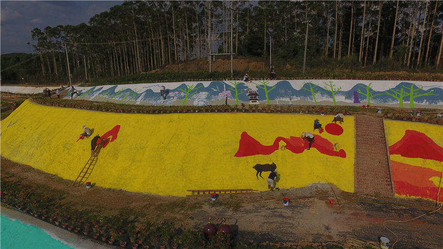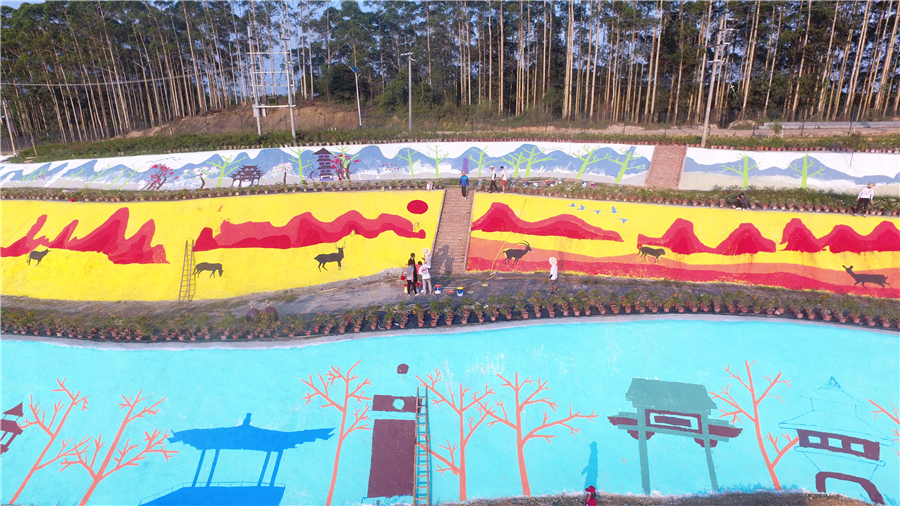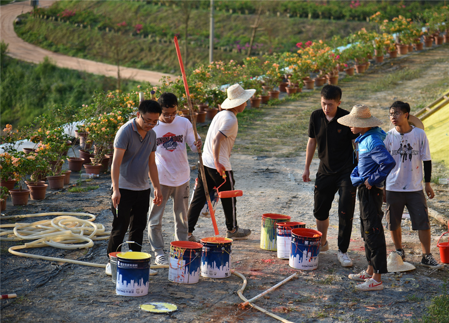为响应党中央关于精准扶贫的号召,提升帮扶村文化内涵,发挥文化扶贫在脱贫攻坚的重要作用,2019年4月,我校美术学院应北海市纪委邀请前往合浦县石塘镇大田村“大田花谷”三角梅种植基地开展墙绘与手工制作扶贫活动。