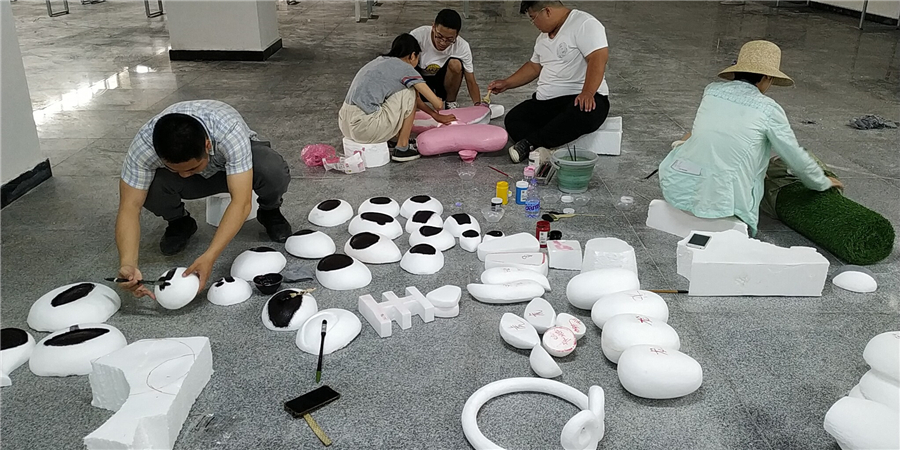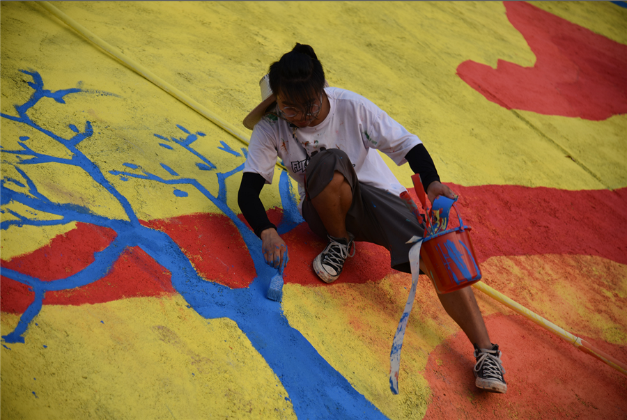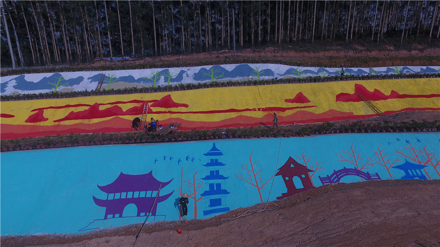 此次墙绘面积达3000多平米,在带队领导的指导下,大家分工明确,从构型、描线、调色、填色到细节的完善,都各司其职,互相帮助,全身心投入在创作中,墙绘工作进展顺利。虽头顶烈日骄阳、满头大汗,心中却满是感动和满足。