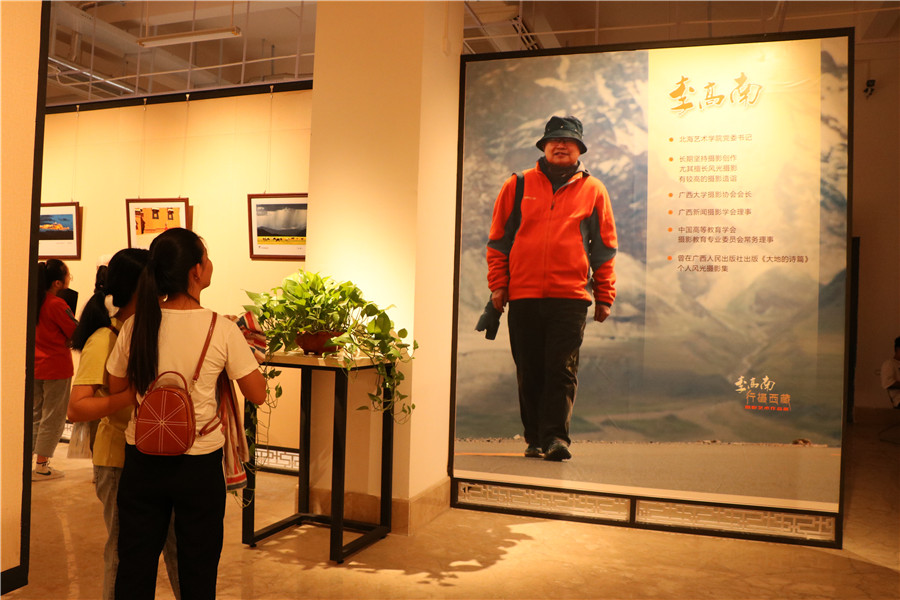 9月30日上午9点30分,热烈庆祝中华人民共和国成立70周年—李高南行摄西藏摄影艺术作品展开展仪式在北海艺术设计学院西校区图书馆一楼展厅举行。