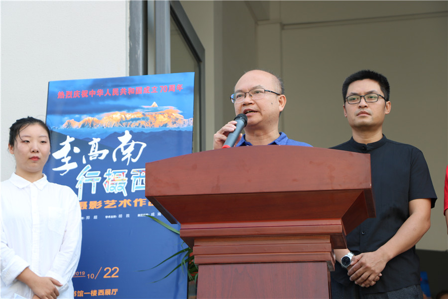仪式开始由本次摄影展的学术主持人,学校副校长胡胜作开幕式致辞。胡胜副校长表示,李高南书记在繁忙工作中依然保持着强烈的艺术追求,这种精神值得我们广大师生去学习。他对展出的作品高度评价,并期待李高南书记能够将个人的摄影知识和创作经验向学生传授。最后,胡胜副校长说,此次摄影展不仅是李高南书记的个人创作成果展示,还丰富了校园文化,营造了浓厚的艺术氛围,是摄影专业师生及摄影爱好者之间一个很好的交流的平台。
