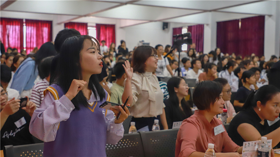 活动在破冰游戏中拉开帷幕。破冰游戏的规则是同学们回答主持人问题,以包袱和锤头为选项。现场同学全体起立,积极热情参与其中,现场气氛十分热烈。