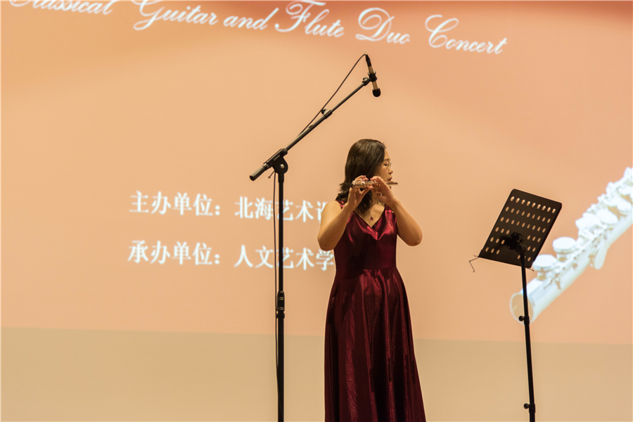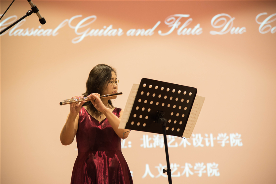 2019年10月31日晚,古典吉他与长笛二重奏音乐会在我校大礼堂成功举办,此次音乐会有幸邀请到来自法国的古典吉他演奏家埃瑞克·佛朗塞利和旅法长笛演奏家郝雪雯同台献演。两位艺术家为我校师生带来了一场精彩的视听盛宴!
