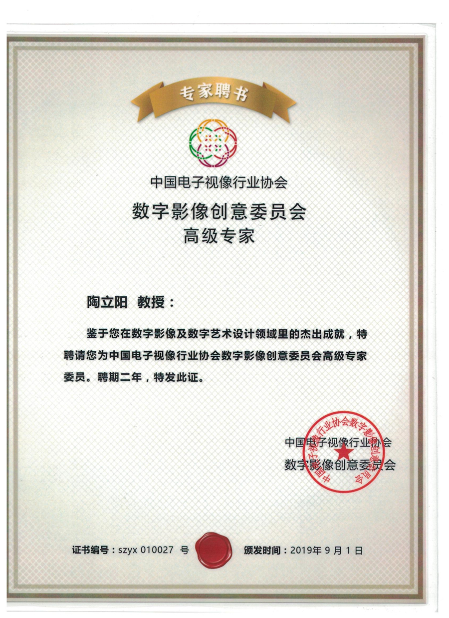 陶立阳教授被中国电子视像行业协会授予“数字影像创意委员会高级专家”