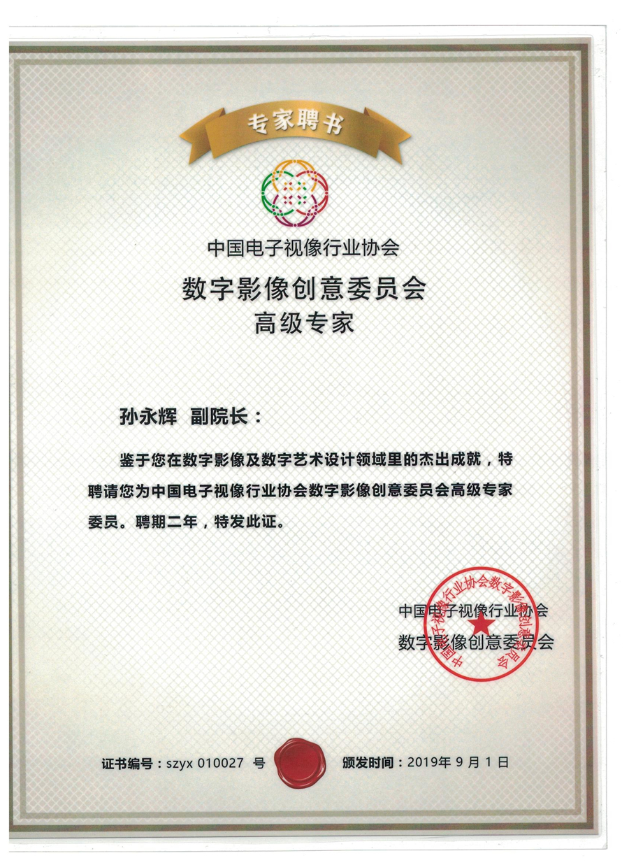 孙永辉副院长被中国电子视像行业协会授予“数字影像创意委员会高级专家”