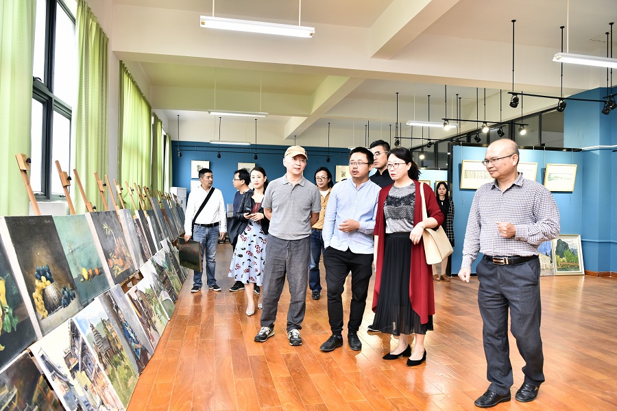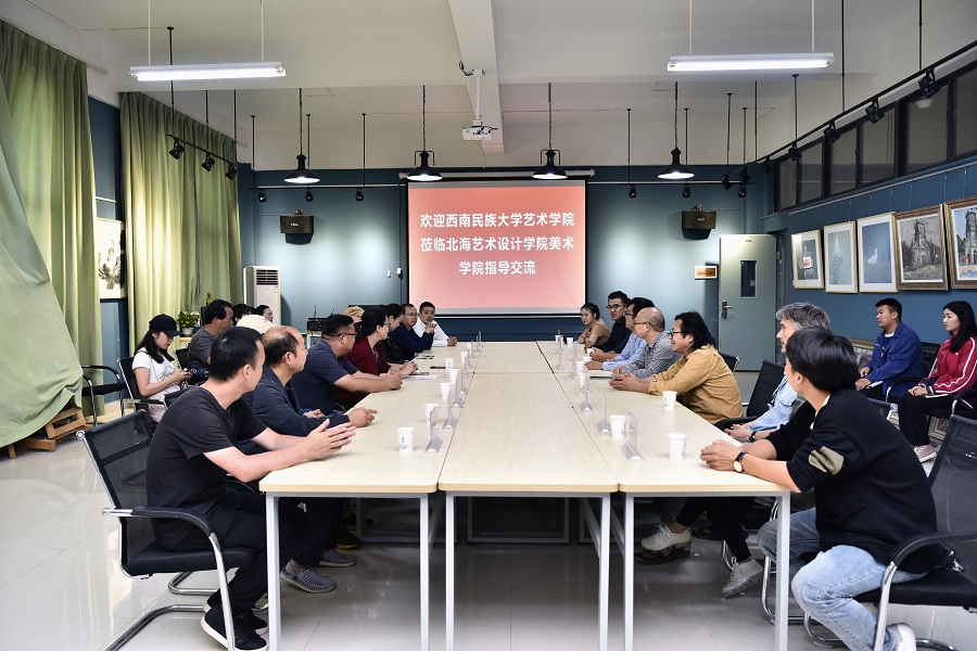 西南民族大学艺术学院领导老师此行还专程回访了在我校担任教师的优秀毕业生代表郭巍、王勃,参观了我校党委书记李高南同志个人摄影展、校园环境以及美术学院各专业教研室的工作室。