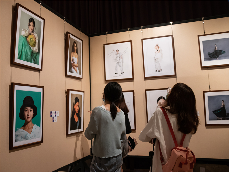 开幕仪式结束后,由美术学院常务副院长龚为以及美术学院教师陪同校领导参观,校领导点评了展览作品并提出了宝贵的建议,有助于提升今后的教学水平。