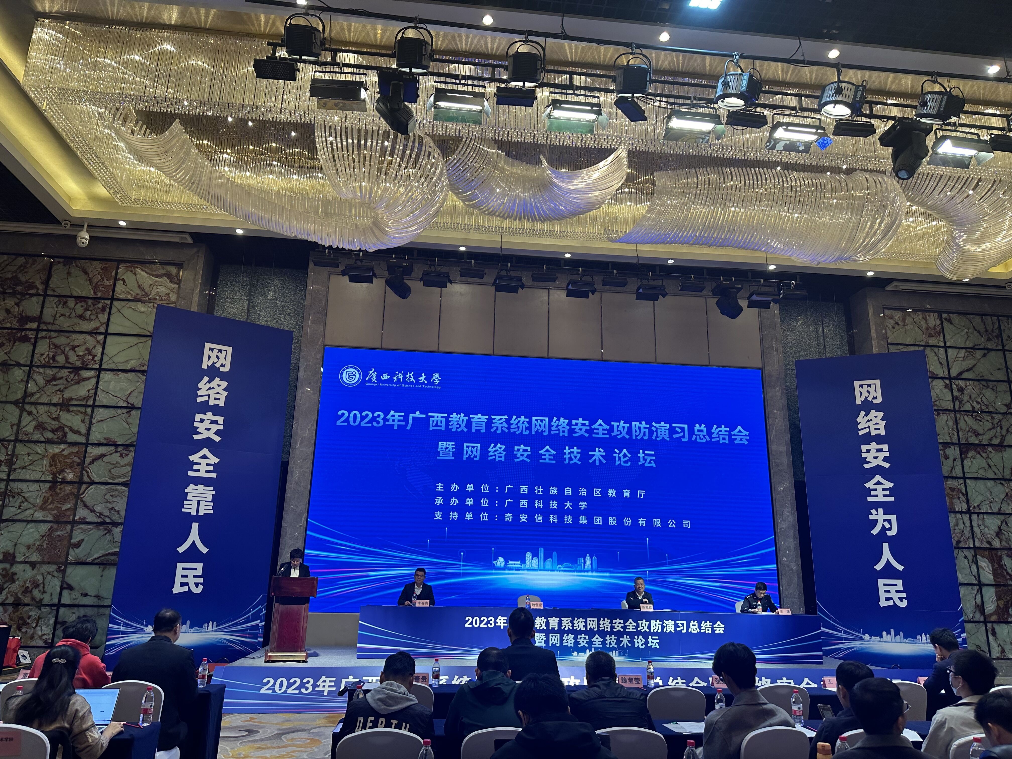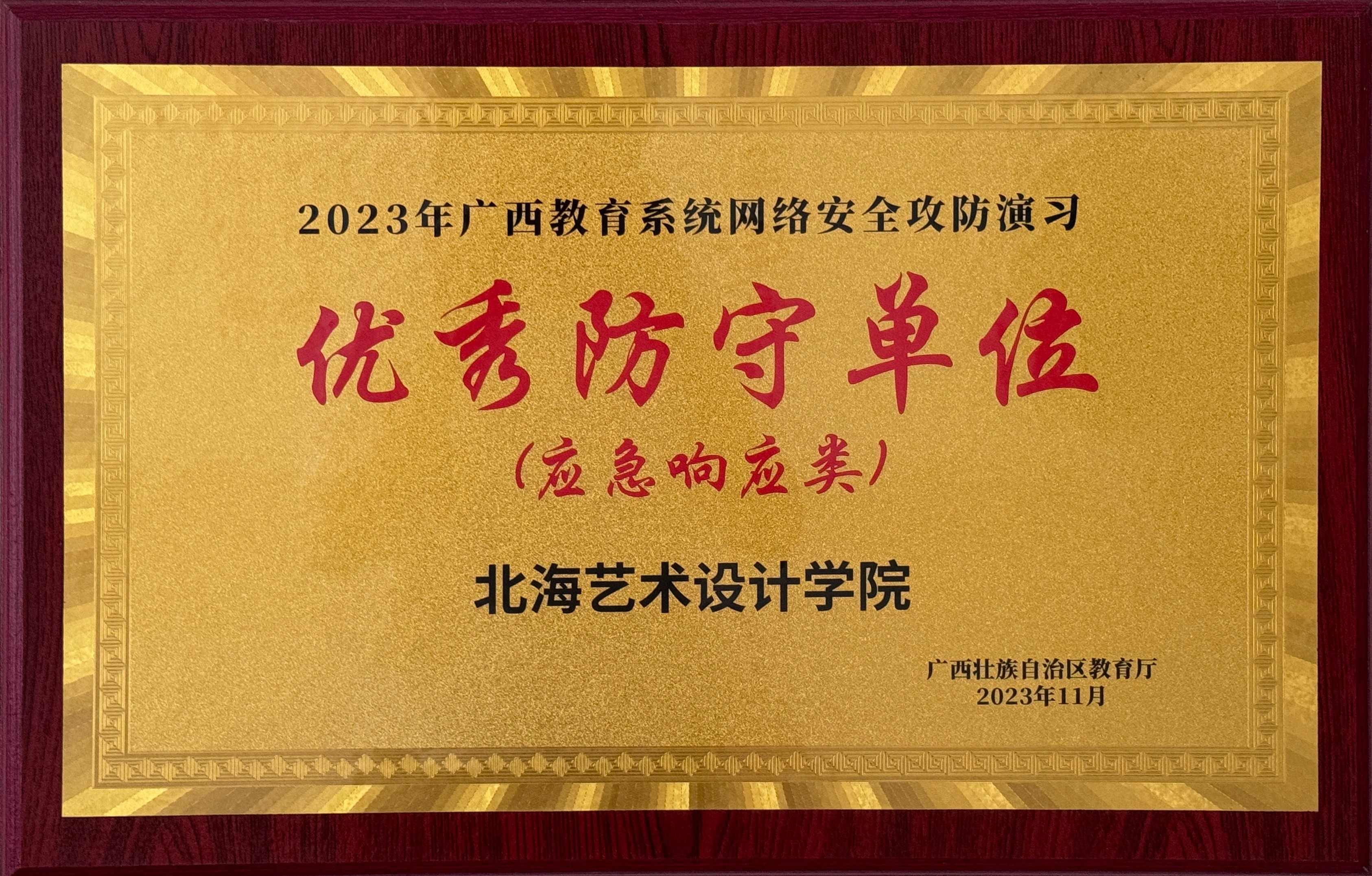 为深入贯彻落实习近平总书记关于网络强国的重要思想,进一步提高全区教育系统网络安全意识,全面检查全区教育系统关键信息基础设施和重要信息系统网络安全防护和应急处置能力,确保网络信息安全,由广西壮族自治区教育厅主办,广西科技大学承办的“2023年广西教育系统网络安全攻防实战演习”活动,于2023年10月16日至20日在柳州启动,我校高度重视本次演习工作,设备与信息处代表学校作为防守队伍参加此次演习活动,期间全程监控网络攻击态势,积极采取措施拦截网络攻击,追踪溯源网络攻击者。在全区120多家参演单位中脱颖而出,荣获“优秀防守单位”(应急响应类)称号,圆满完成攻防演习任务。