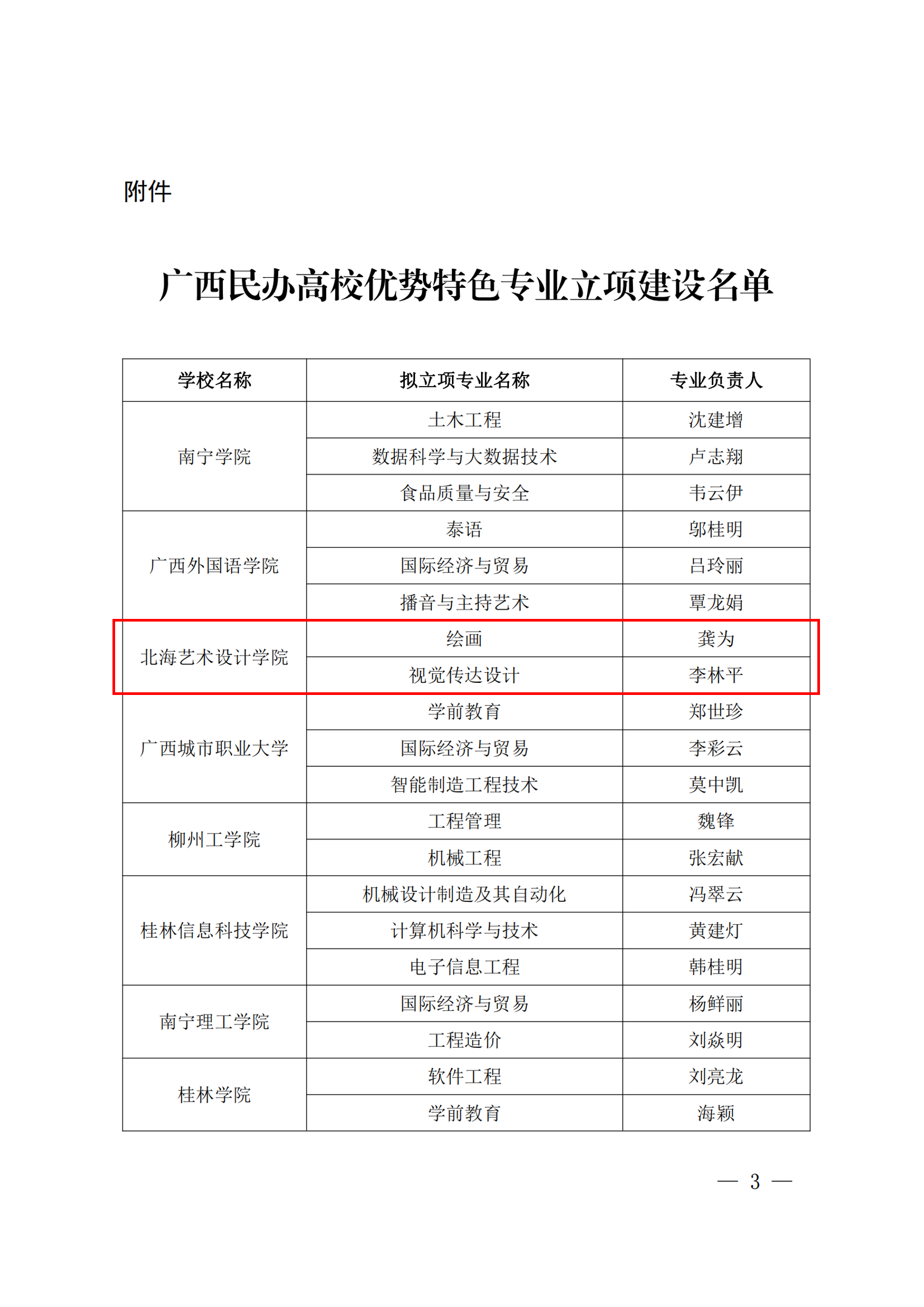 关于公布广西民办高校优势特色专业建设项目立项名单的通知