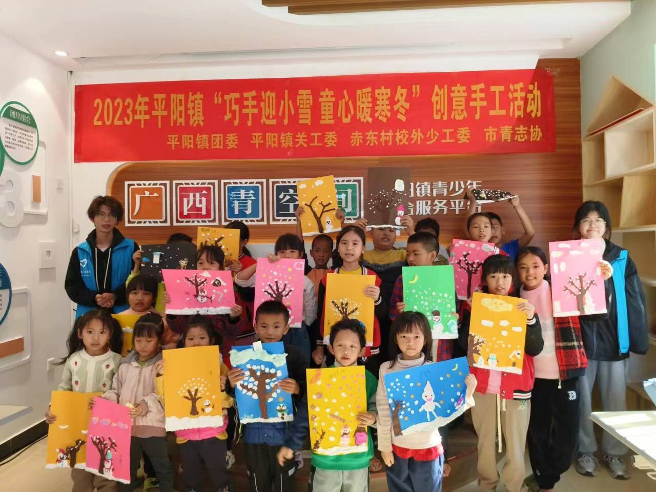 在赤东村,志愿者们开展了“巧手迎小雪,童心暖寒冬”创意手工活动。带着孩子们一起探索无限的创造力,让他们的想象力在这次课程中得到发展,展现出独特的艺术天赋。孩子们用粘土创造出了一幅幅属于自己的、独一无二的作品。