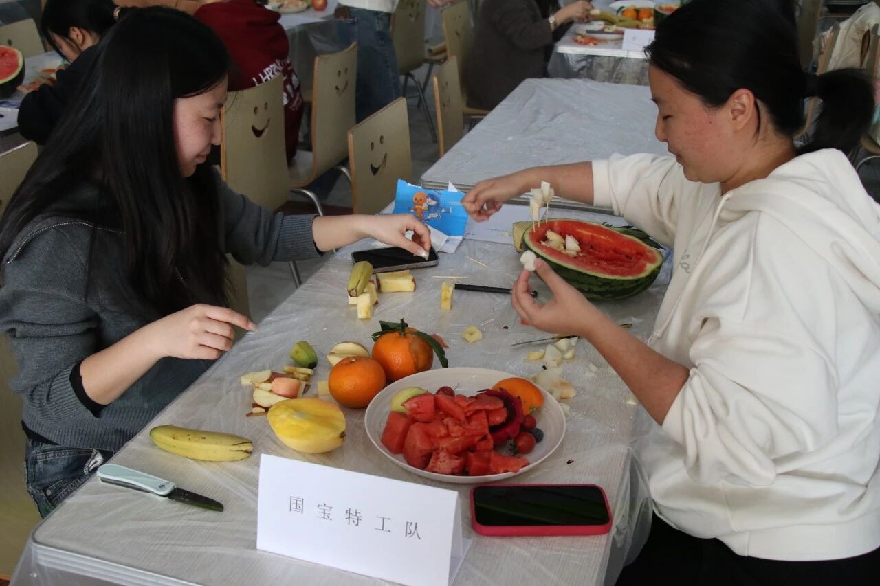 经过热闹又温馨的比拼,最终角逐出优胜队伍,收获了缤纷的果品素材。选手们以“创造、环保、美观”为设计理念,开启新春主题水果拼盘的创作。