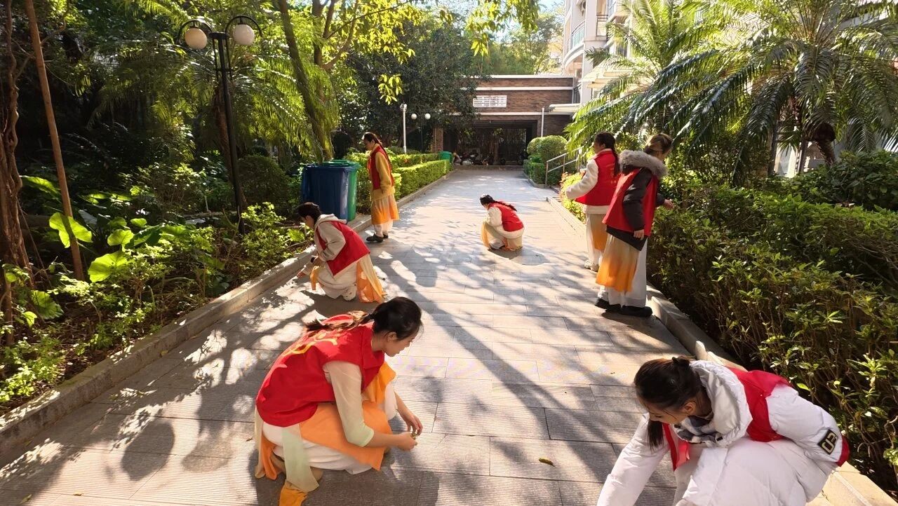 表演结束后,大家迅速转换角色,化身社区环境的“美容师”。同学们分成多个小组,对社区各区域进行清理。从细小垃圾到废弃杂物,志愿者们协同配合、认真细致,不放过任何一处卫生死角。
